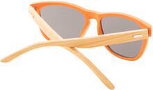 Sluneční brýle s barevnými plastovými obroučkami a bambusovými nožičkami. S ochranou UV 400.