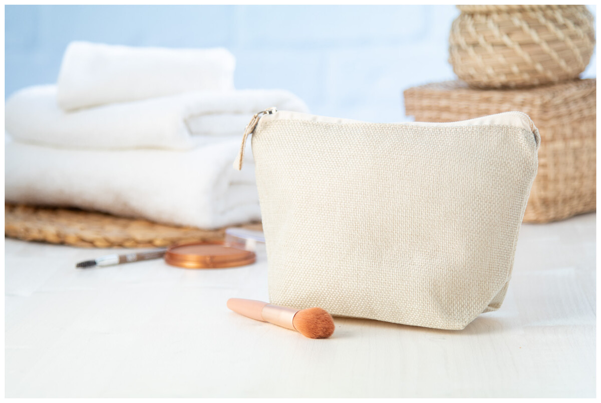 Kosmetická taštička na zip z polyesteru v přírodní barvě.