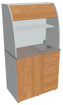 Vedle spodní velké skříňky jsou umístěny 3 zásuvky, do kterých můžete uložit lžičky, ubrousky, čistící prostředky a pod.