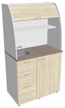 V provedení se dřezem je hloubka dvou vrchních zásuvek zkrácena právě z důvodu umístění dřezu.