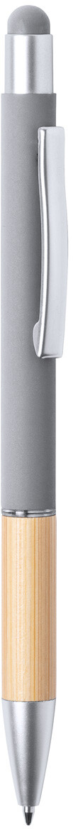 Hliníkové kuličkové a dotykové pero s bambusovým uchopením a matným povrchem. S modrou náplní.