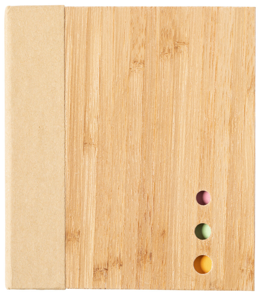 Blok z recyklovaného papíru potažený bambusem se 115 velkými, 115 středními a 420 mini lepicími lístky (ve 3 různých barvách).