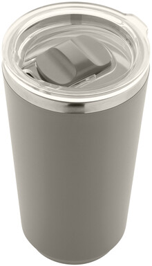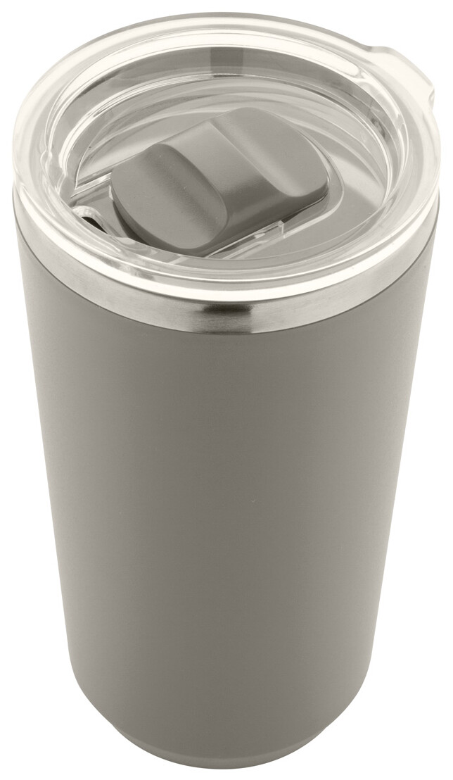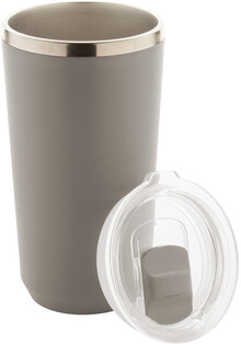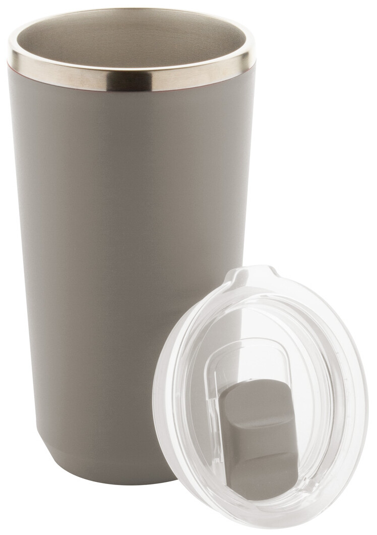 PP plastem pokrytý dvoustěnný, nerezový termo hrnek s víčkem na pití. 500 ml.