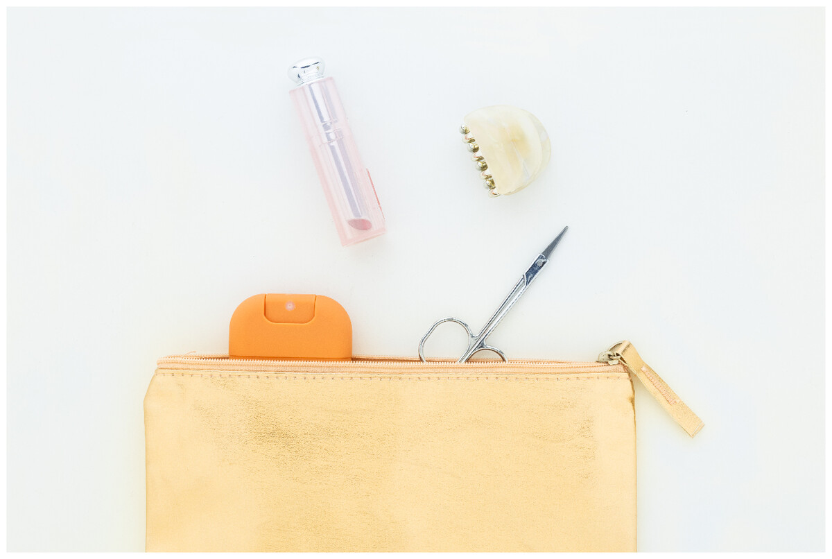 Kosmetická taštička na zip z PU kůže s metalickým povrchem.
