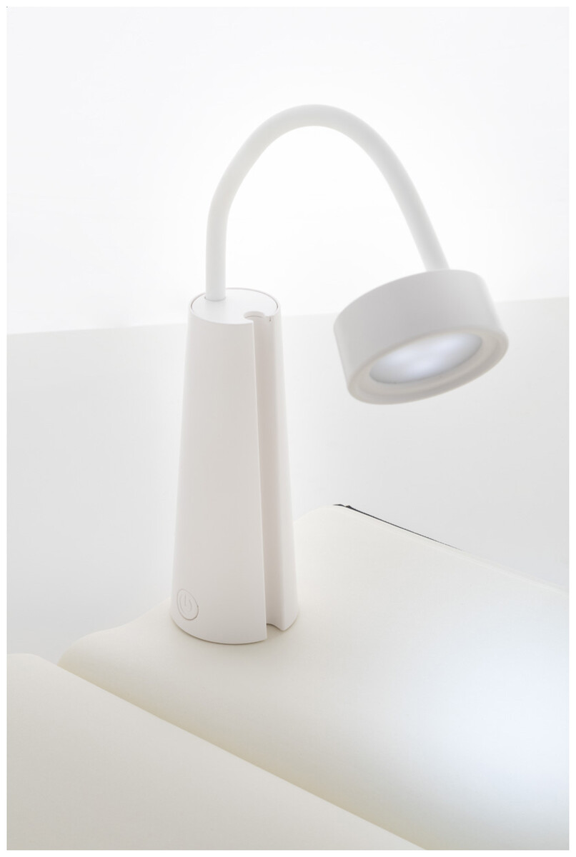 Multifunkční svítilna a stolní lampa z ABS s ohebnou hlavou, magnetickou základnou a vestavěnou USB dobíjecí baterií (1200 mAh). Se 6 LED diodami a režimy teplého, přirozeného a studeného světla. Včetně USB nabíjecího kabelu.