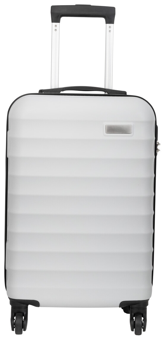 20palcová příruční taška na kolečkách s pevnou skořepinou z materiálu RPET se 4 kolečky, teleskopickou rukojetí a kombinovaným zámkem. S vnitřní podšívkou z RPET a elastickými upevňovacími popruhy. S kovovou destičkou pro gravírování loga