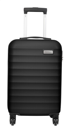 20palcová příruční taška na kolečkách s pevnou skořepinou z materiálu RPET se 4 kolečky, teleskopickou rukojetí a kombinovaným zámkem. S vnitřní podšívkou z RPET a elastickými upevňovacími popruhy. S kovovou destičkou pro gravírování loga