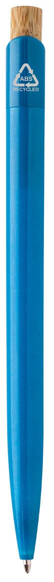 Kuličkové pero z recyklovaného ABS plastu s bambusovým tlačítkem. S modrou náplní.
