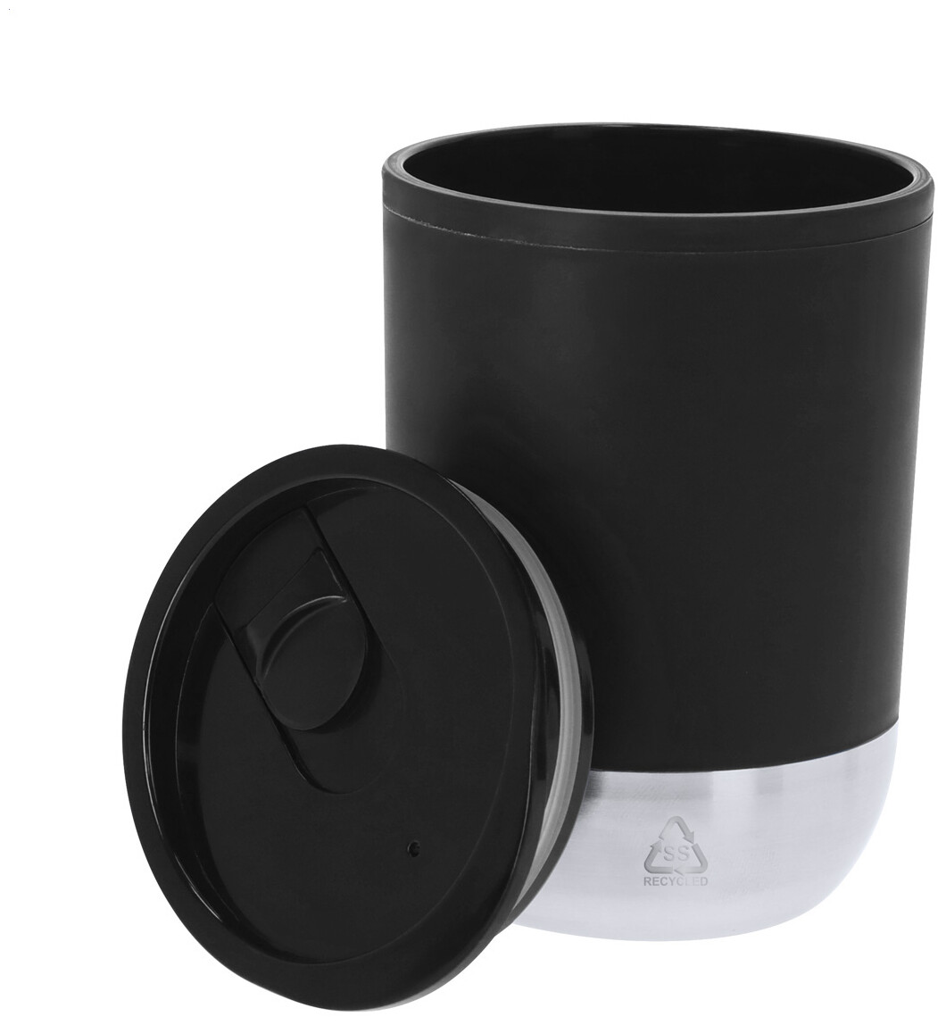 Dvoustěnný termo hrnek s PP plastovou izolací se dnem z recyklované nerezové oceli a víčkem na pití. 300 ml.