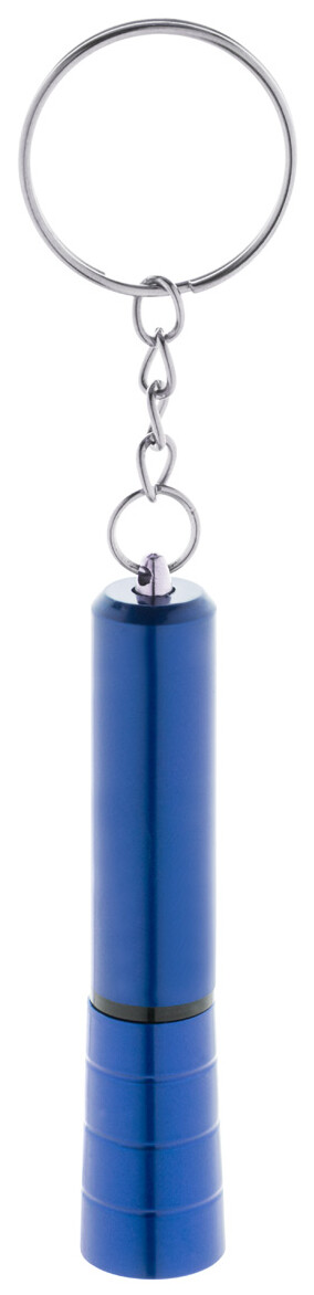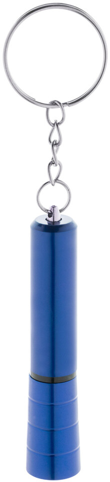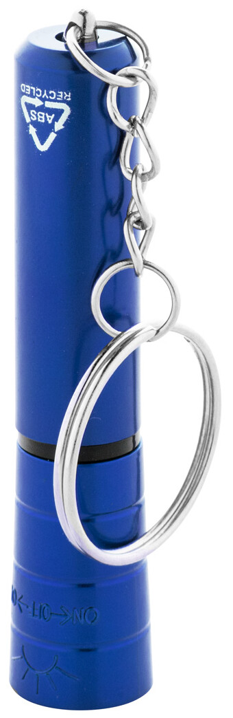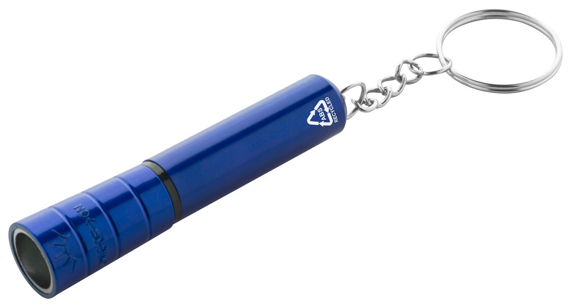 Mini baterka s 1 LED, z recyklovaného ABS plastu s kovovým povrchem a kovovým kroužkem na klíče. S knoflíkovou baterií.
