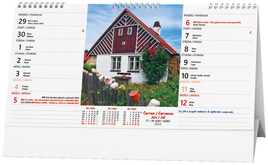 - státní svátky a významné dny CZ/SK, tabulkový kalendář aktuálního a následujícího roku, místo na poznámky