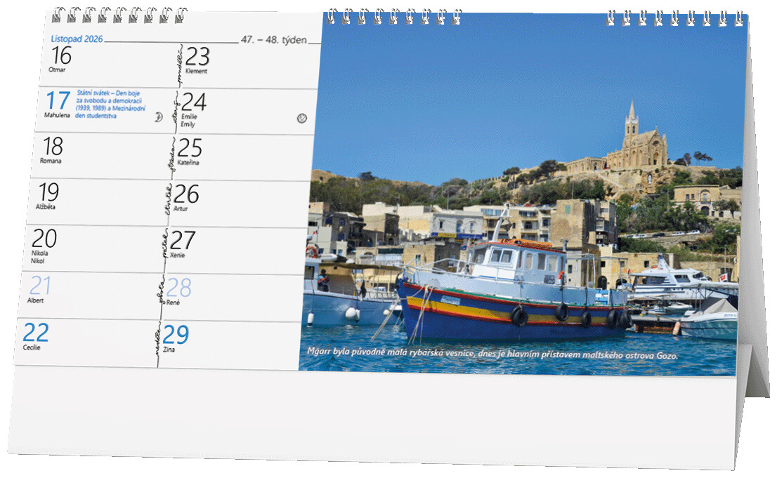 Stolní kalendář se čtrnáctidenním kalendáriem pro všechny milovníky cestování.