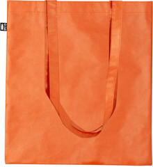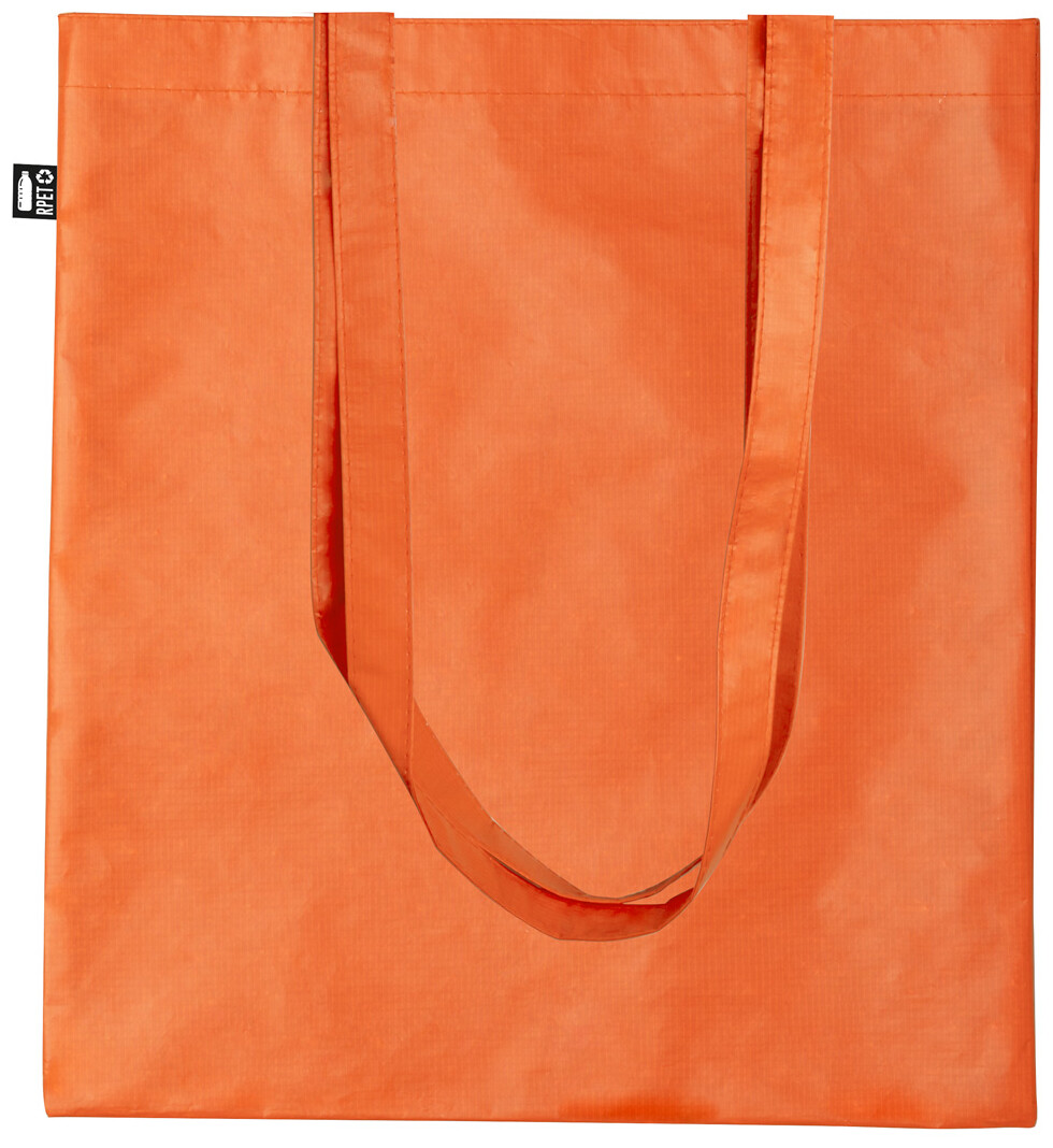 Polaminovaná recyklovaná RPET nákupní taška s dlouhými uchy, 105 g/m2, s etiketou s označením RPET.