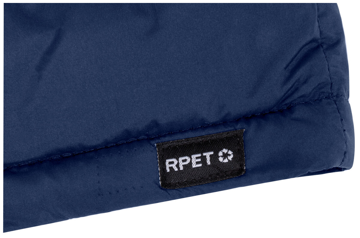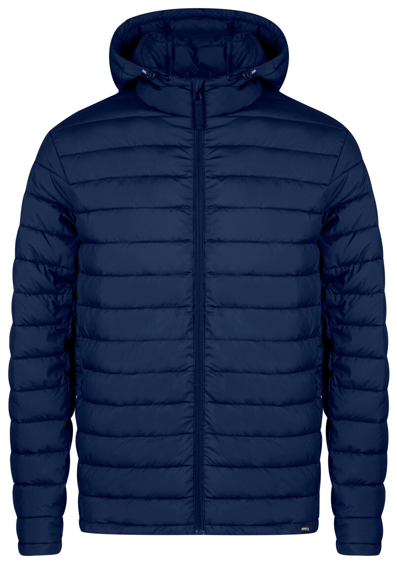Větru a vodě odolná polstrovaná bunda na zip s bočními kapsami na zip a nastavitelnou kapucí. S polyesterovým pouzdrem RPET. 100% RPET polyester s výrazným štítkem RPET.
