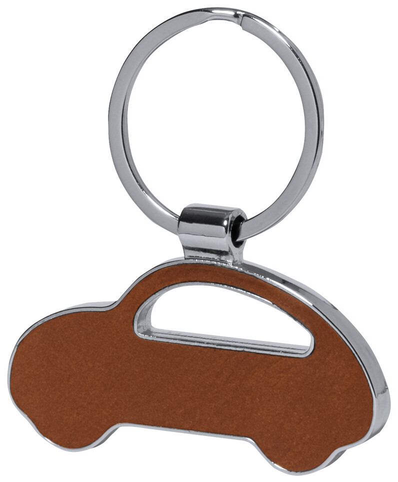 Kovový přívěsek na klíče potažený recyklovanou kůží.