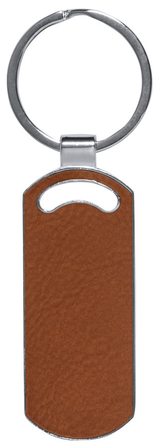 Kovový přívěsek na klíče potažený recyklovanou kůží.