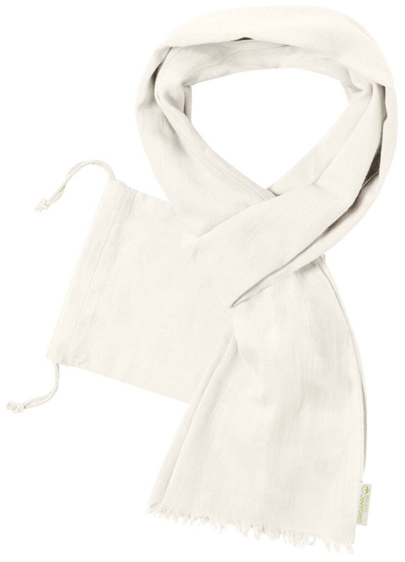 Módní dámský šátek z organické bavlny v ladícím barevném pytlíku se stahovací šňůrkou. 100% organická bavlna, 60 g/m2.