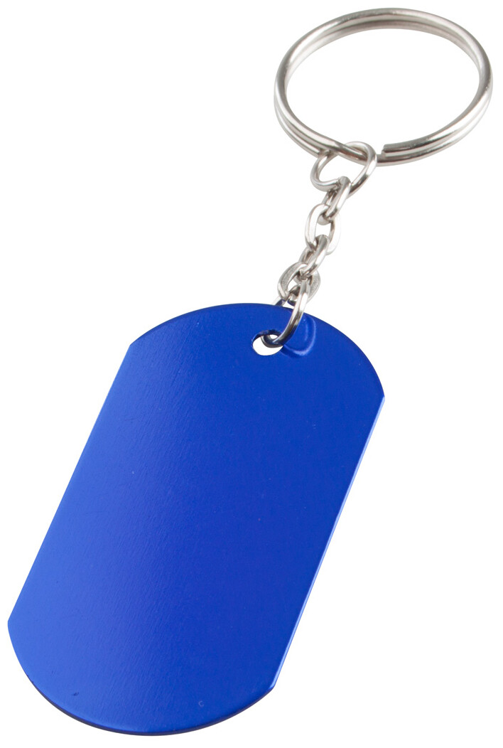 Hliníkový přívěšek na klíče s kovovým kroužkem.