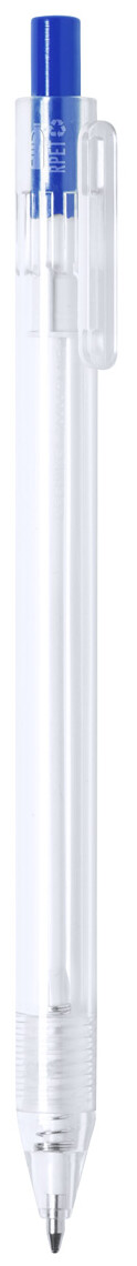 Průhledné plastové kuličkové pero RPET s barevným tlačítkem. S modrou náplní.