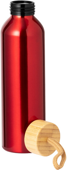 Láhev z recyklovaného hliníku s bambusovým uzávěrem, 600 ml.