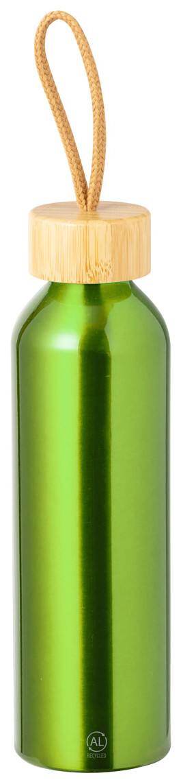 Láhev z recyklovaného hliníku s bambusovým uzávěrem, 600 ml.