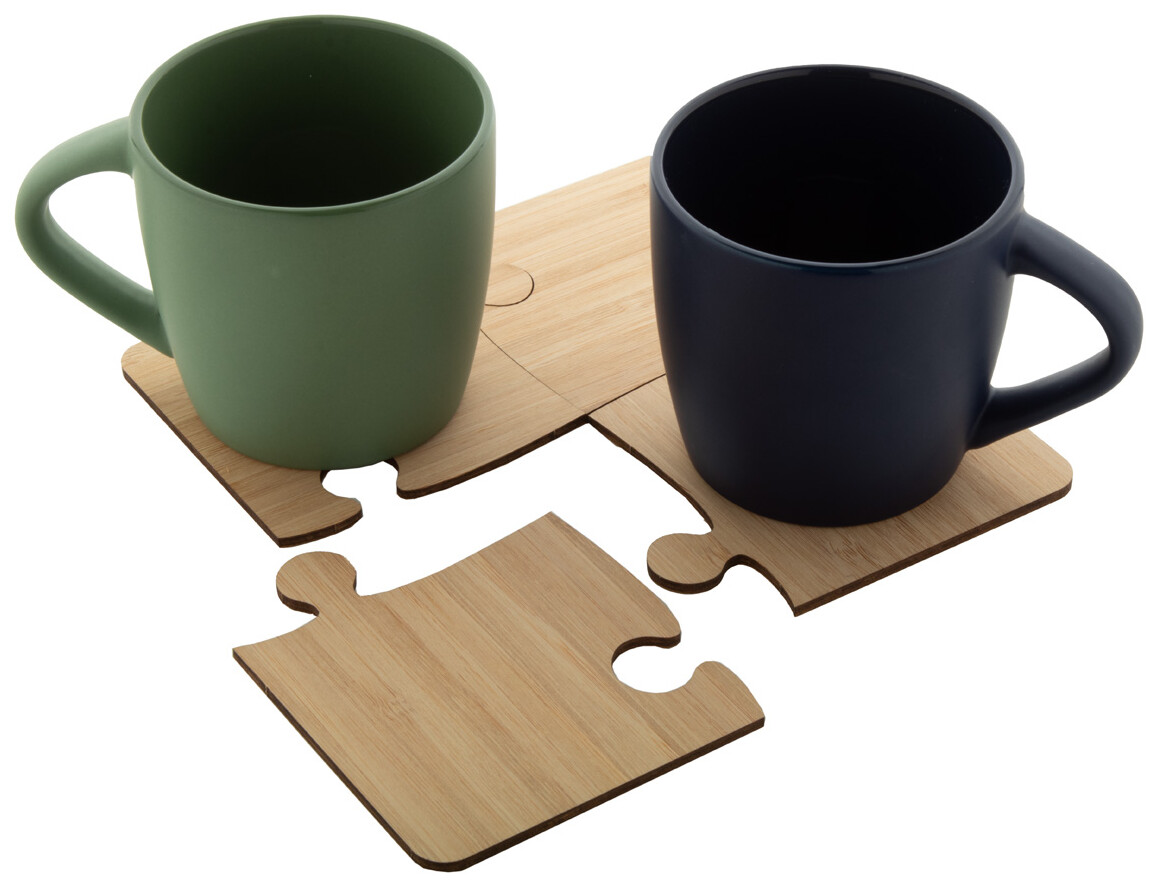 4dílná sada bambusových tácků ve tvaru puzzle.