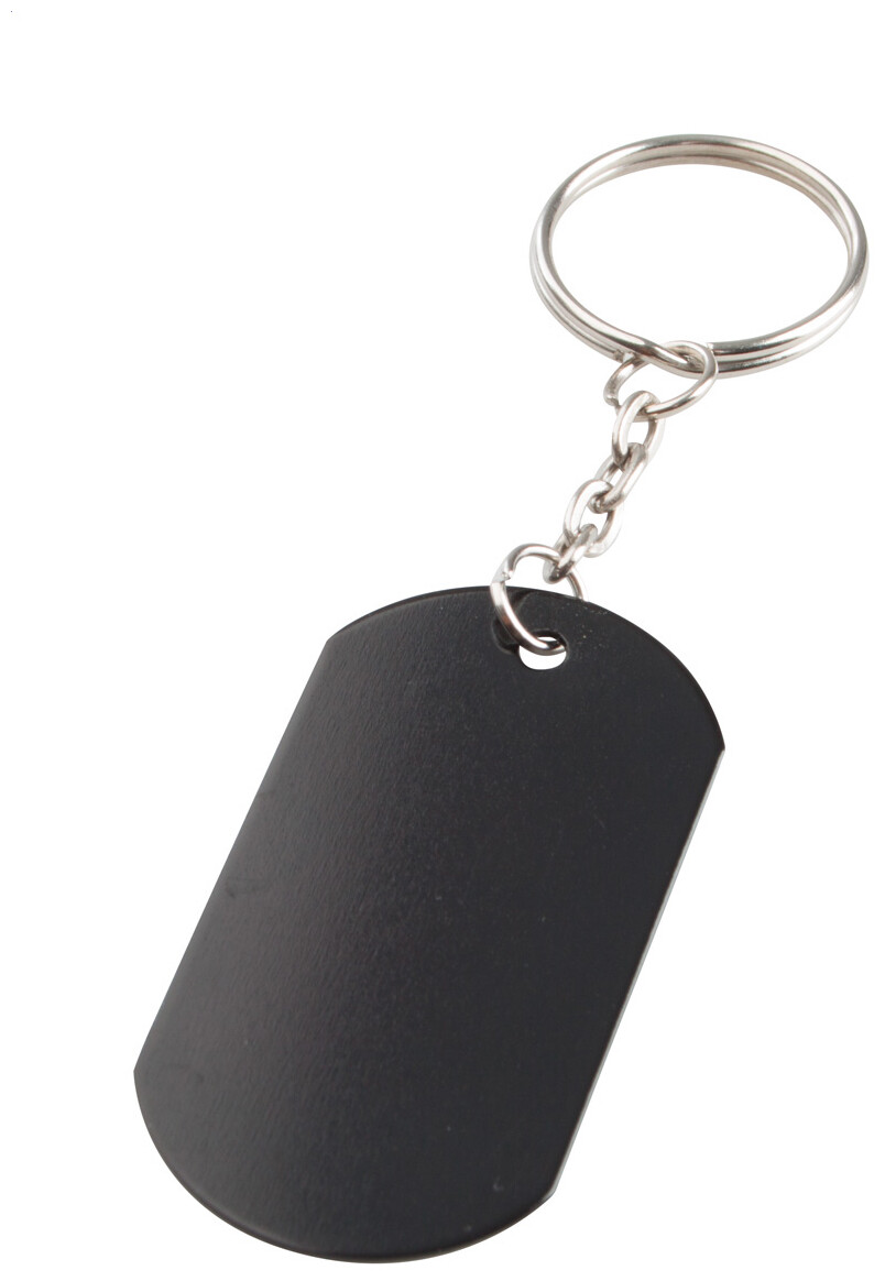 Hliníkový přívěšek na klíče s kovovým kroužkem.