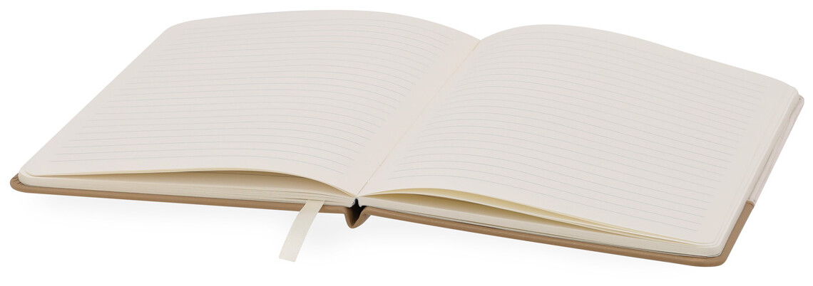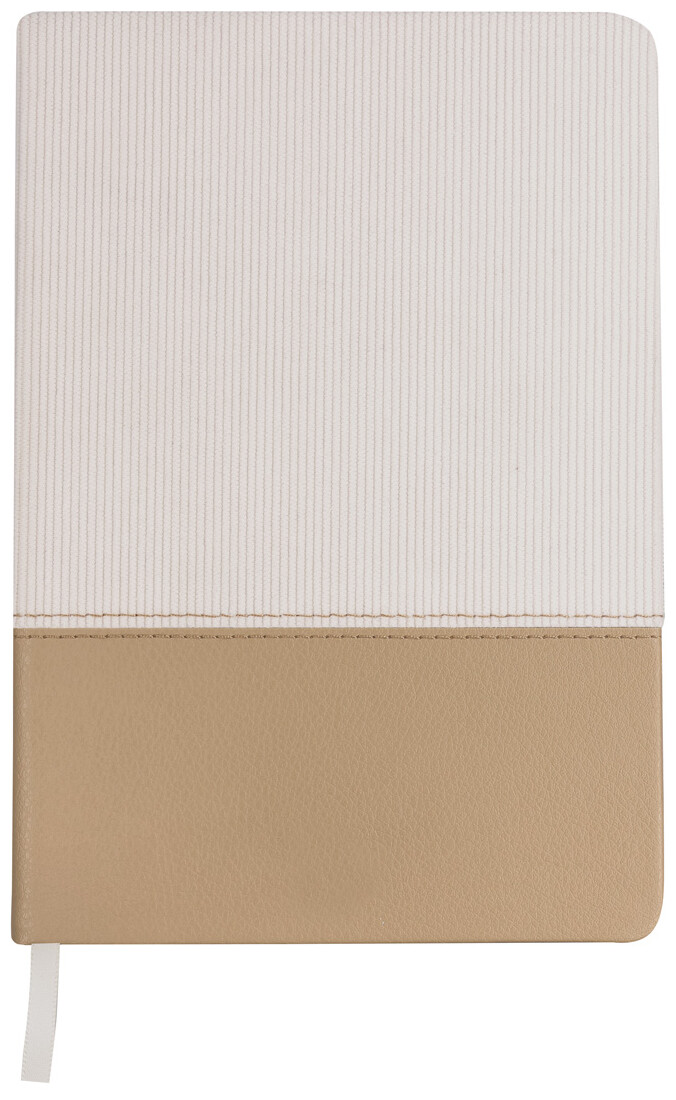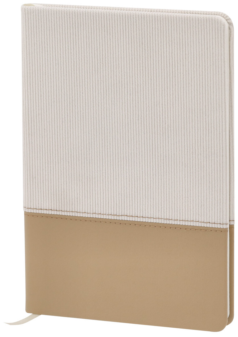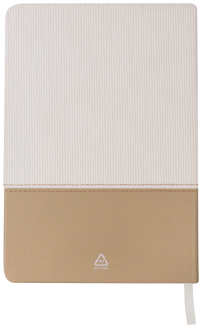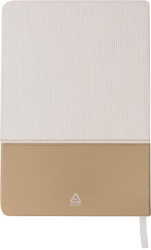 Blok A5 potažený texturovaným polyesterem a recyklovanou PU kůží se záložkou a 80 linkovanými listy.