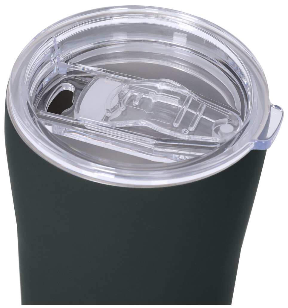 Dvoustěnný, nerezový izolovaný termo hrnek s pogumovanou úpravou a víčkem na pití, 350 ml.