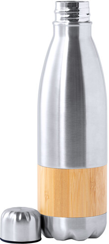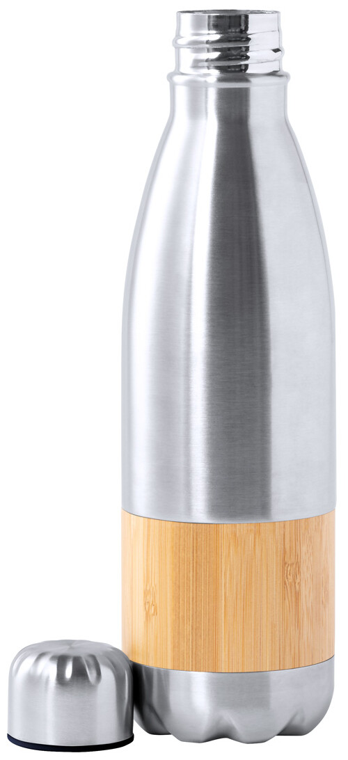 Sportovní láhev ve tvaru láhve z nerezové oceli s bambusovou vložkou, 750 ml.