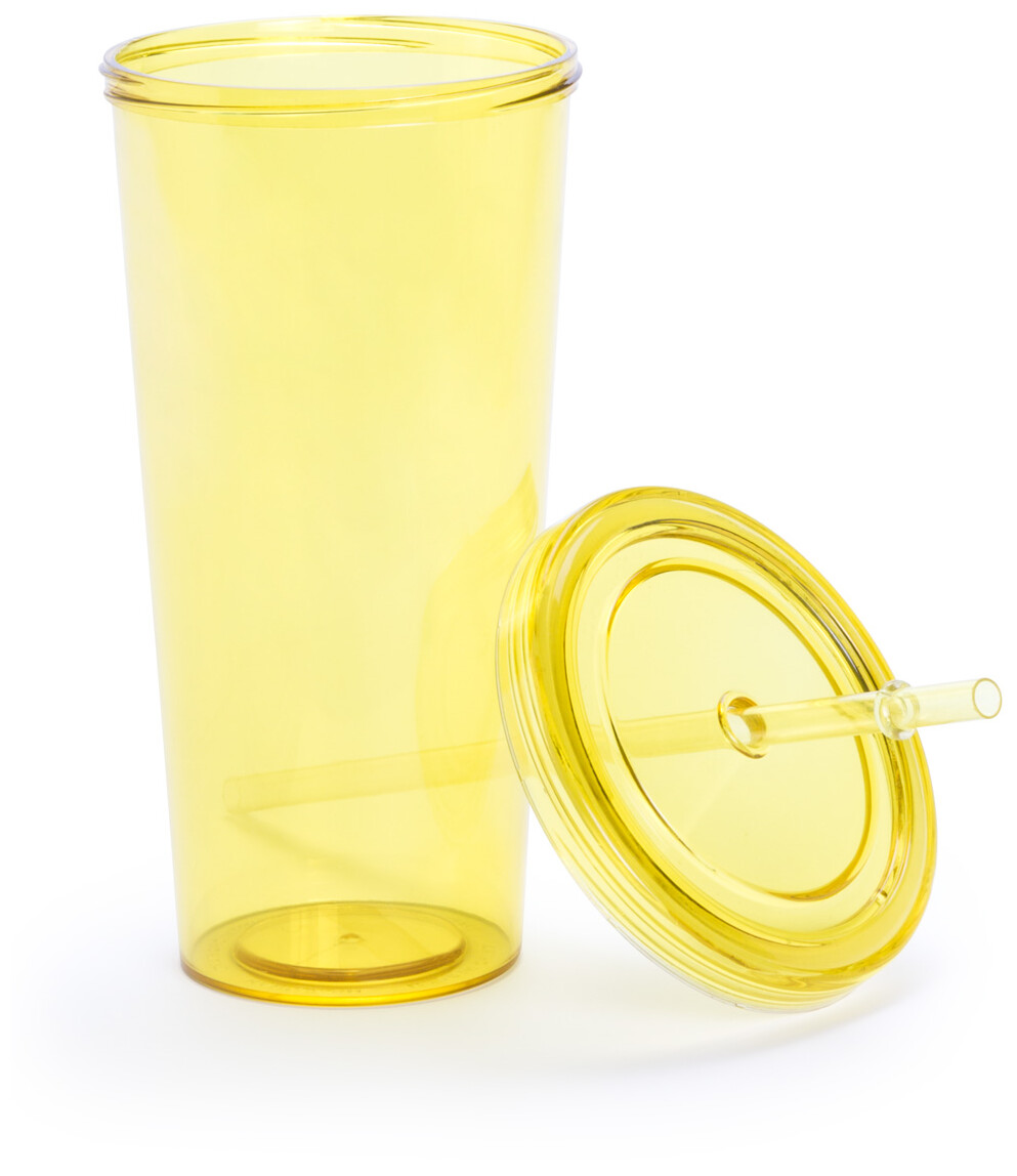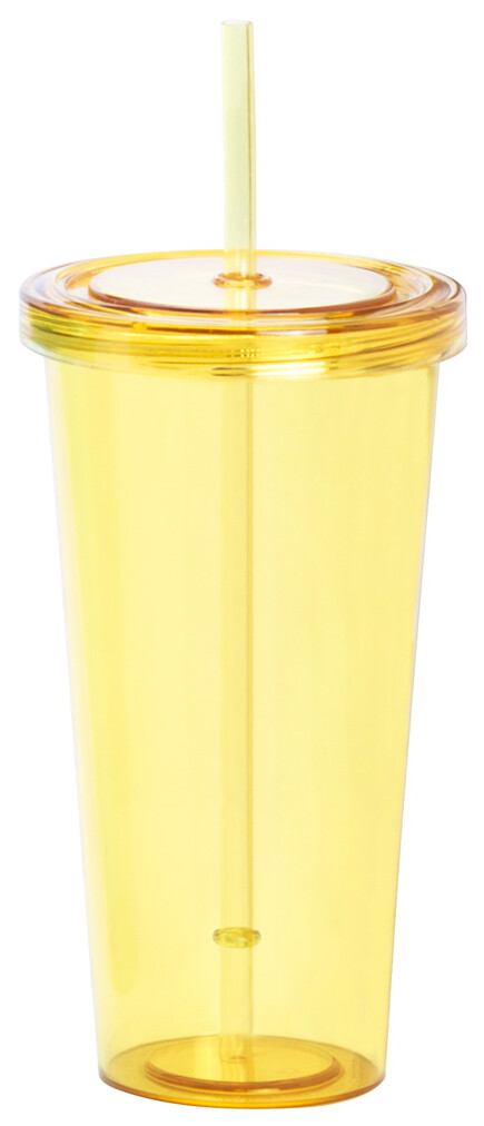Barevný, průhledný plastový kelímek s brčkem, 750 ml.