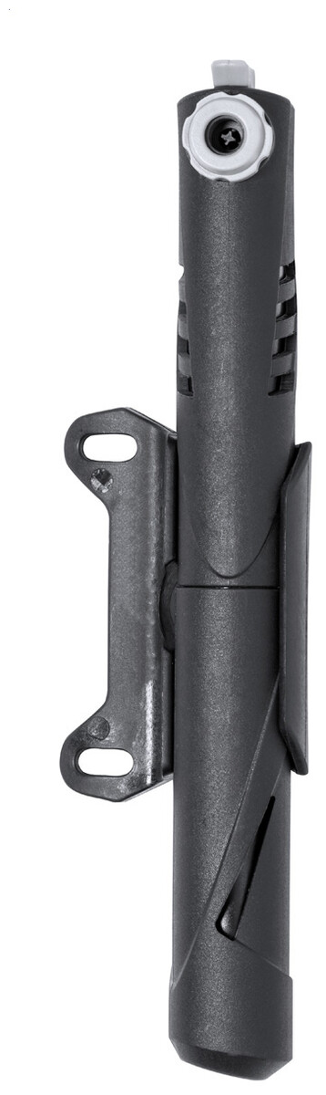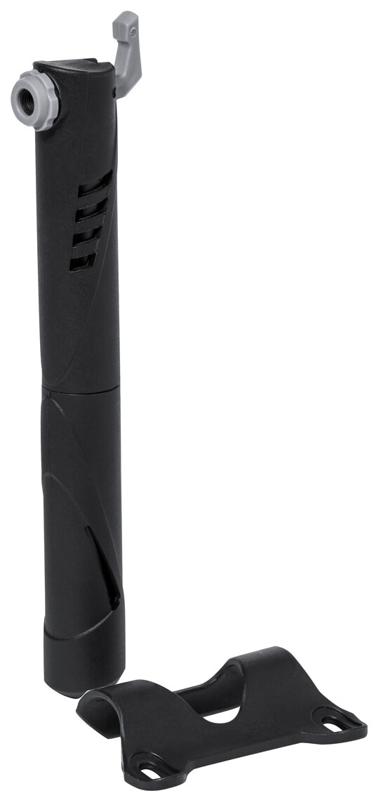 Mini cyklistická ruční pumpa s držákem na rámu.