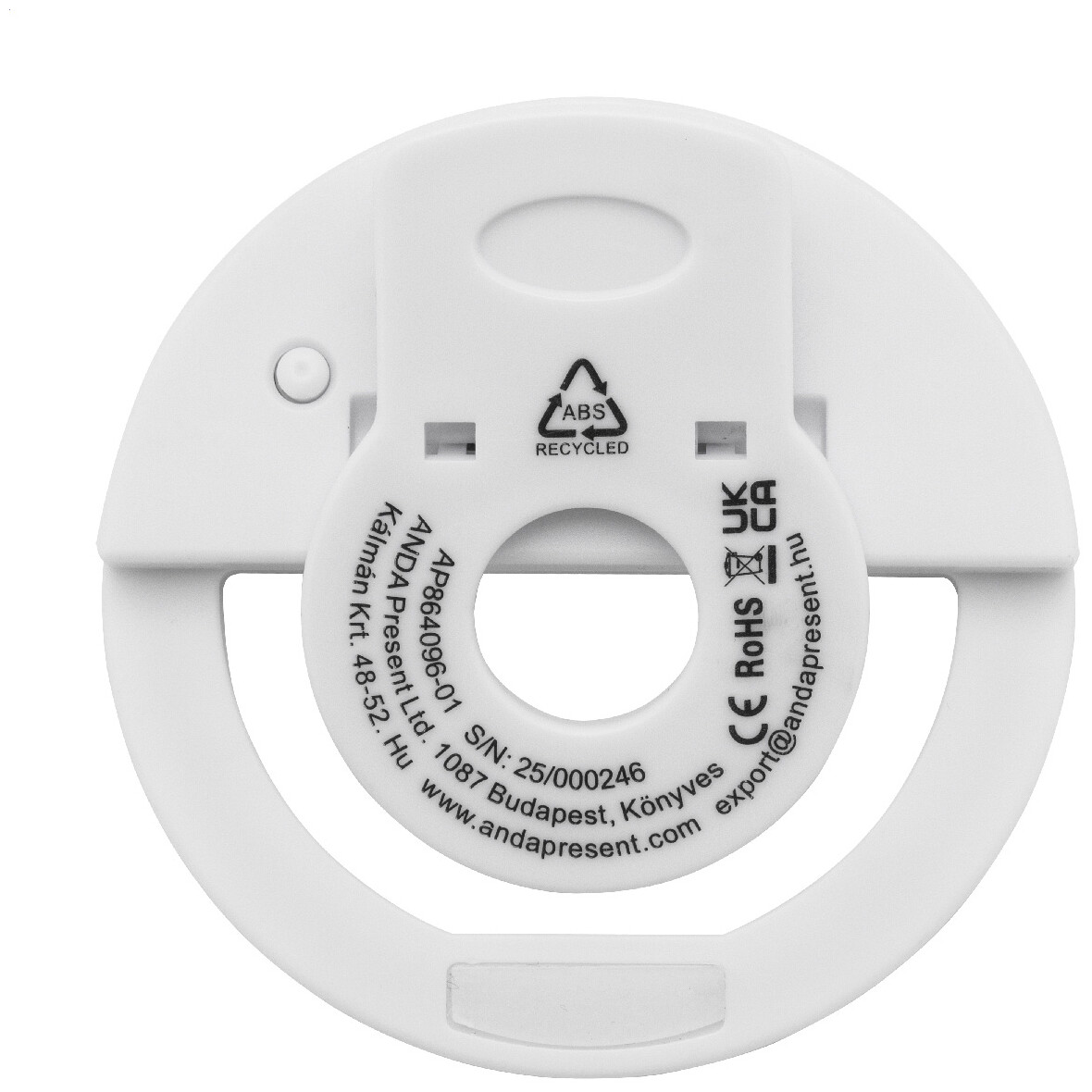 Selfie světlo z recyklovaného ABS materiálu s 28 LED diodami pro mobilní telefony. Se 3 nastavitelnými úrovněmi jasu a vestavěnou dobíjecí baterií (150 mAh). Včetně USB nabíjecího kabelu.