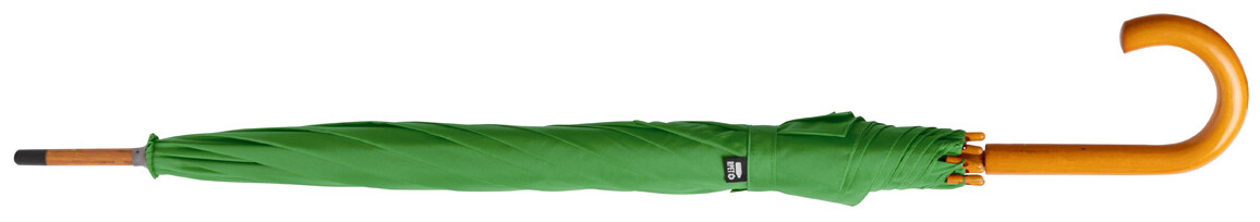 Automatický deštník s 8 panely, kovovým rámem, dřevěnou tyčkou a rukojetí. 190T RPET pongee, s etiketou s označením RPET.