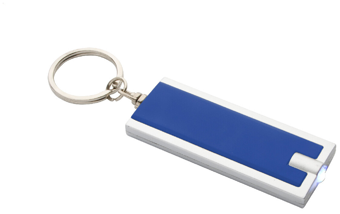 Přívěšek na klíče z recyklovaného ABS materiálu s LED svítilnou a kovovým kroužkem. S knoflíkovými bateriemi.