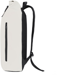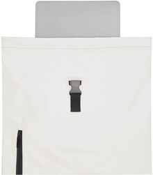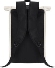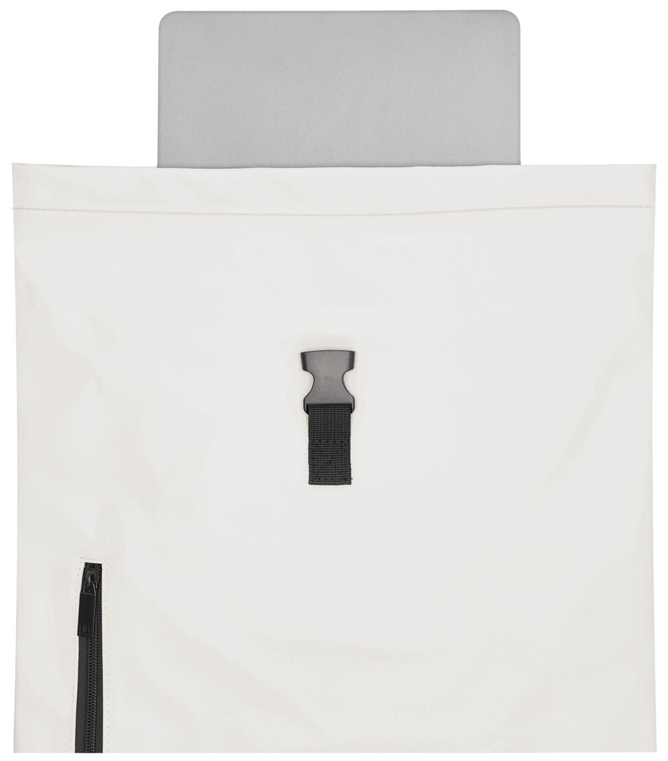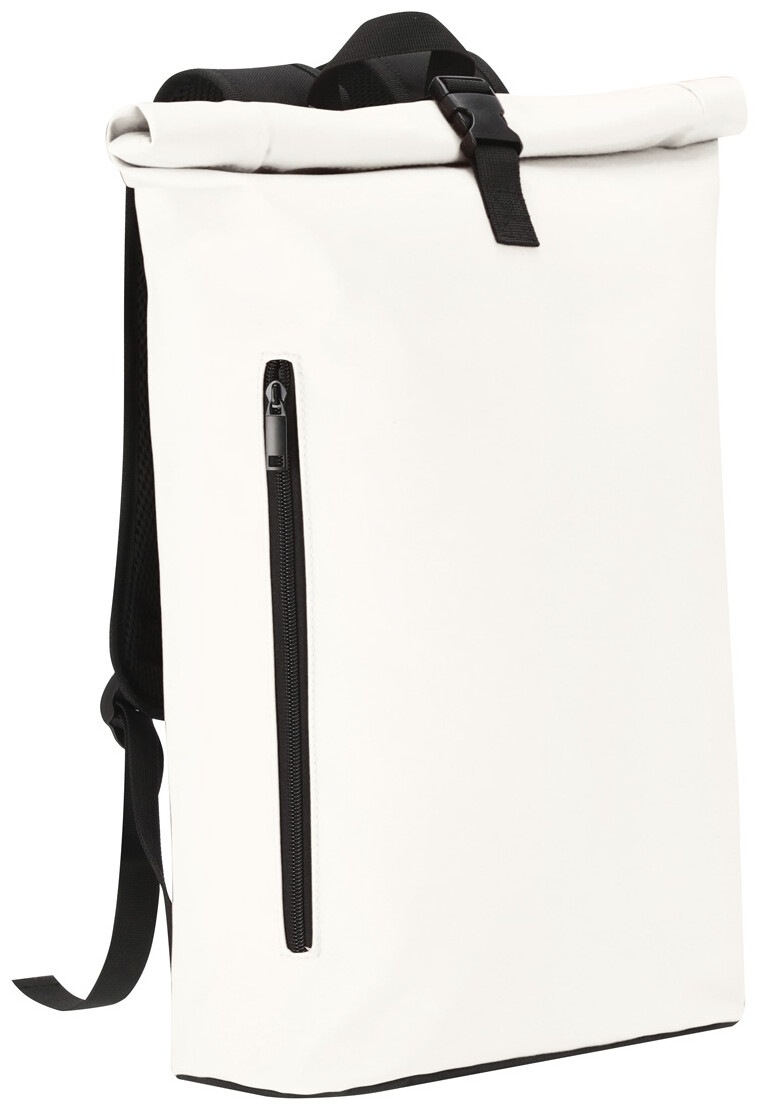 Rolovací batoh z měkké PU kůže se zapínáním na přezku, polstrovaná přihrádka na notebook (15"), polstrovaná záda a ramenní popruhy.