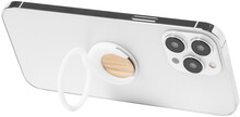 Kulatý ABS plastový držák na mobil se samolepicí spodní stranou a bambusovou mincí do nákupního vozíku.