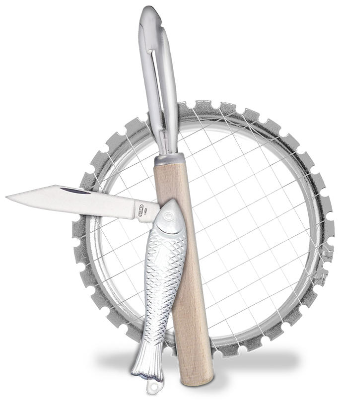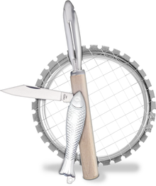 Zavírací nůž "Rybička", Kuchyňská škrabka, Kráječ na brambory a zeleninu