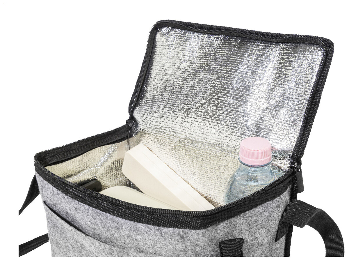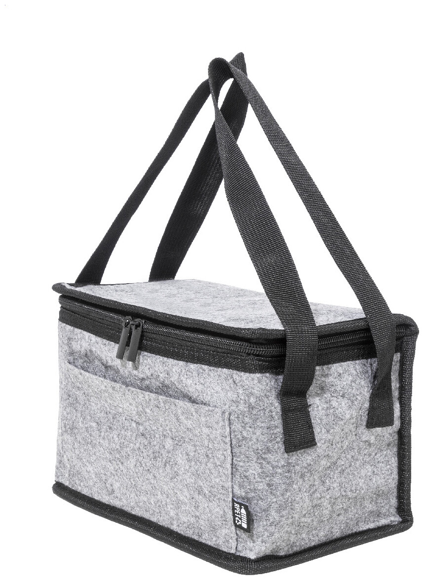 Chladicí taška na zip z RPET plsti s hliníkovým polstrováním, přední kapsou a bočními rukojeťmi. S výrazným štítkem RPET.