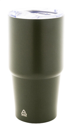 Dvoustěnný vakuově izolovaný termohrnek z recyklované nerezové oceli s víčkem z polystyrenového plastu. 600 ml.