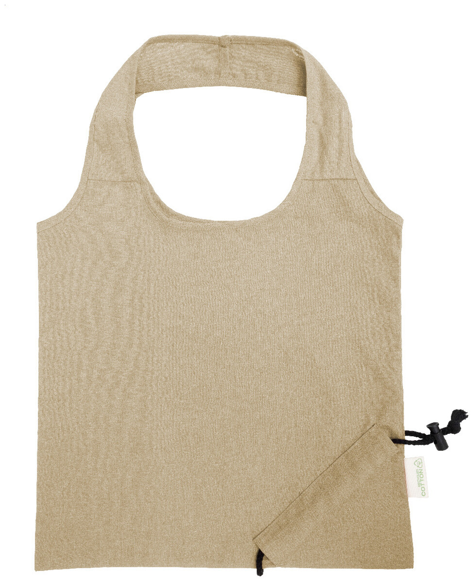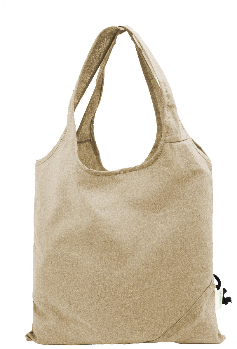Skládací nákupní taška ze 70 % recyklované bavlny a 30 % polyesteru RPET, 140 g/m2. S výrazným štítkem z recyklované bavlny.