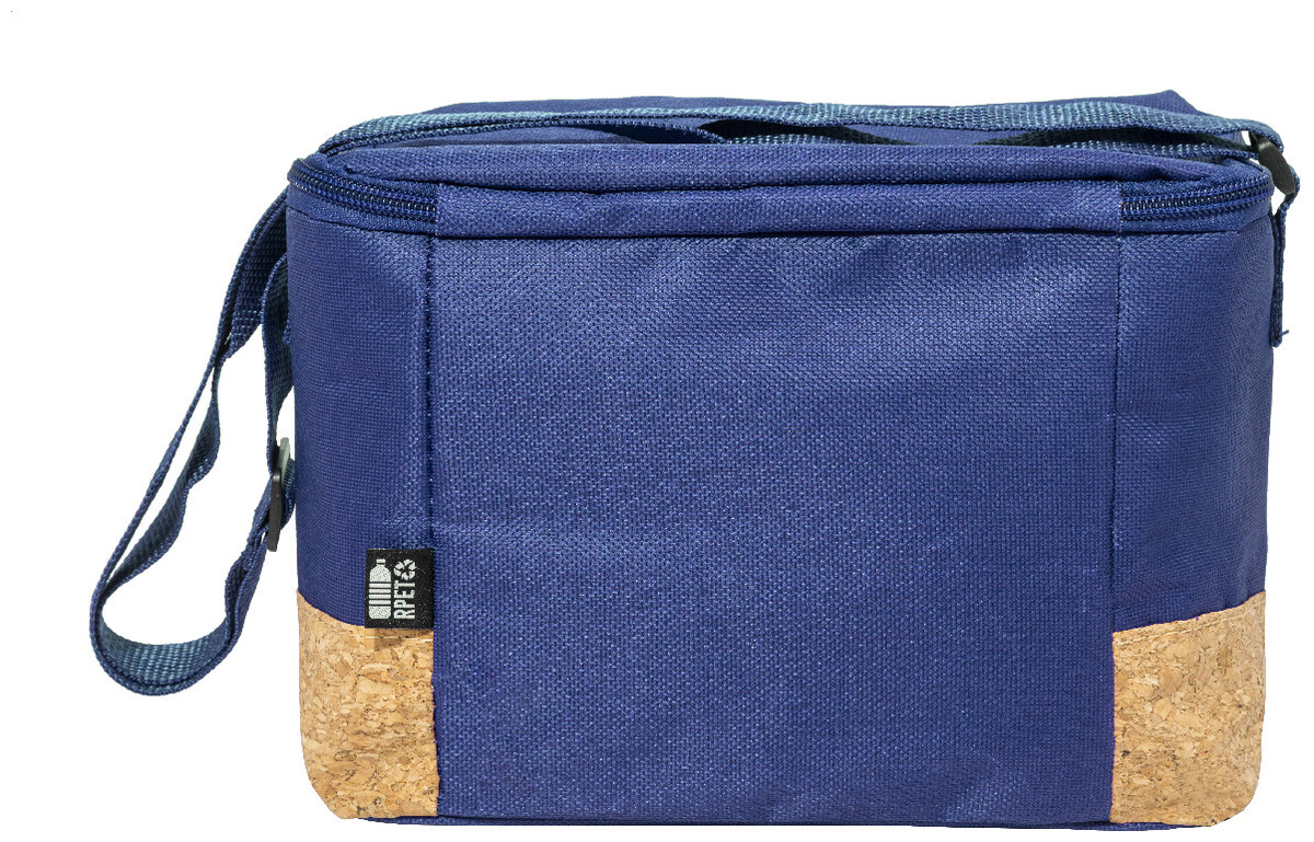 Chladicí taška na zip z 600D RPET polyesteru s přírodní korkovou základnou, PEVA polstrováním a nastavitelným ramenním popruhem. S výrazným štítkem RPET.