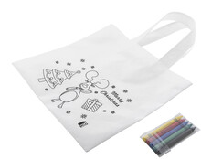 Vánoční dárková taška z netkané RPET tkaniny na vybarvování s 5 voskovkami.