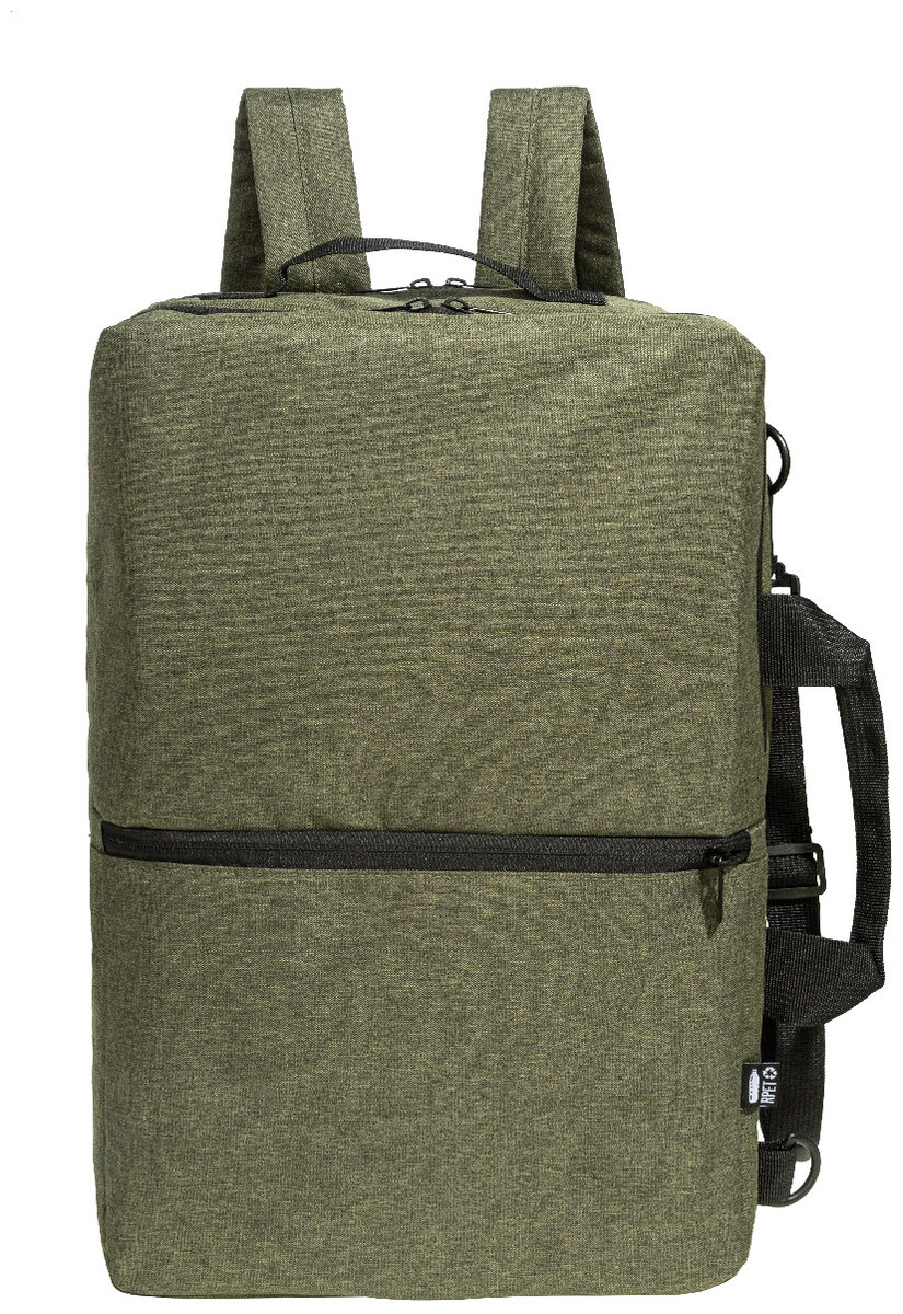 Dvojfunkční RPET batoh a taška na dokumenty s přihrádkou na zip, 2 předními kapsami na zip a polstrovanou přihrádkou na notebook (15"). S polstrovanými zády a ramenními popruhy. Součástí je i odnímatelný ramenní popruh pro použití jako taška na dokumenty. 600D RPET polyester s výrazným štítkem RPET.