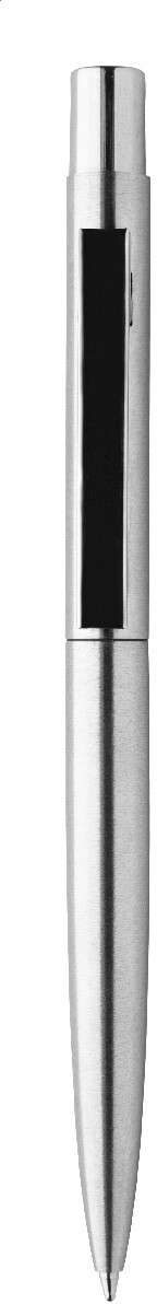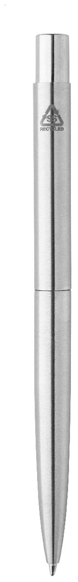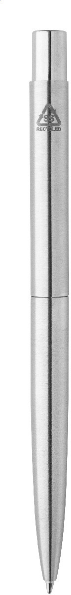 Kuličkové pero z recyklované nerezové oceli s chromovanými detaily. S modrou náplní.