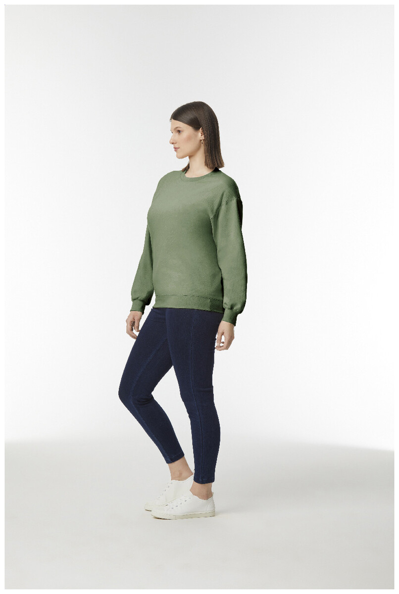 Mikina s kulatým výstřihem, 80% bavlna a 20% polyester. 285 g/m2 (bílá 278 g/m2). Značka Gildan.
