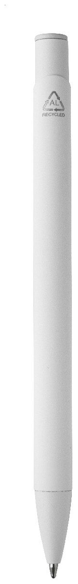 Kuličkové pero z recyklovaného hliníku s pogumovaným tělem a barevnými lesklými kovovými díly. Se speciálním povrchem pro zrcadlové gravírování, které odpovídá kovovým částem. S modrou náplní.