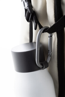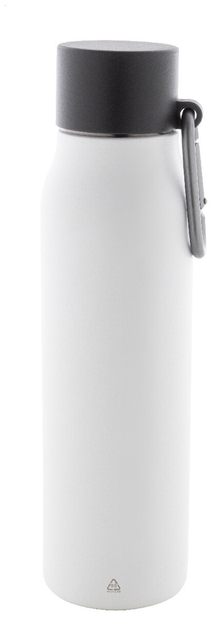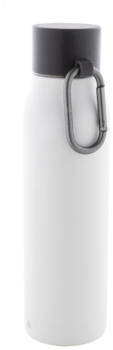 Dvoustěnná vakuová láhev z recyklované nerezové oceli s víčkem z PP a karabinou z recyklovaného hliníku. 500 ml.