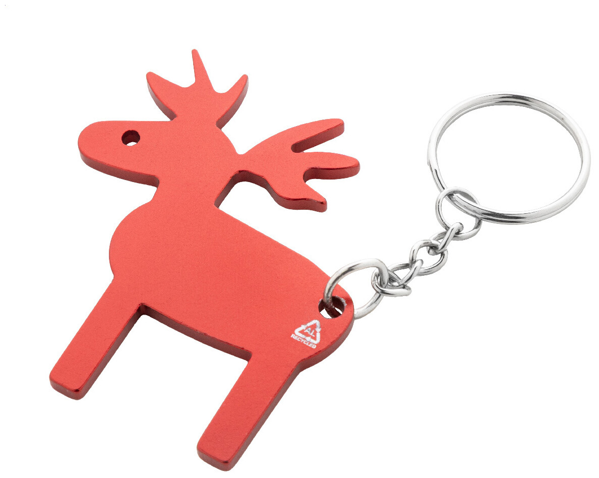 Přívěsek na klíče ve tvaru soba z recyklovaného hliníku s kovovým kroužkem.