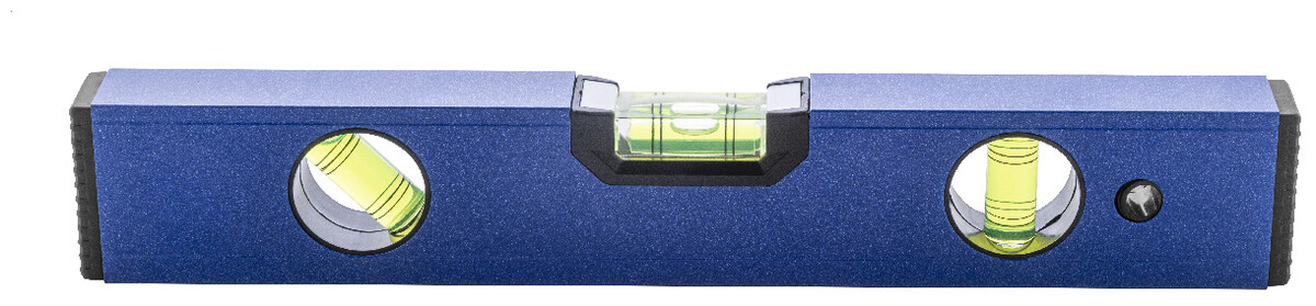 Magnetická vodováha z recyklovaného hliníku se třemi vodováhami (horizontální, vertikální a 45°) a 30cm pravítkem.